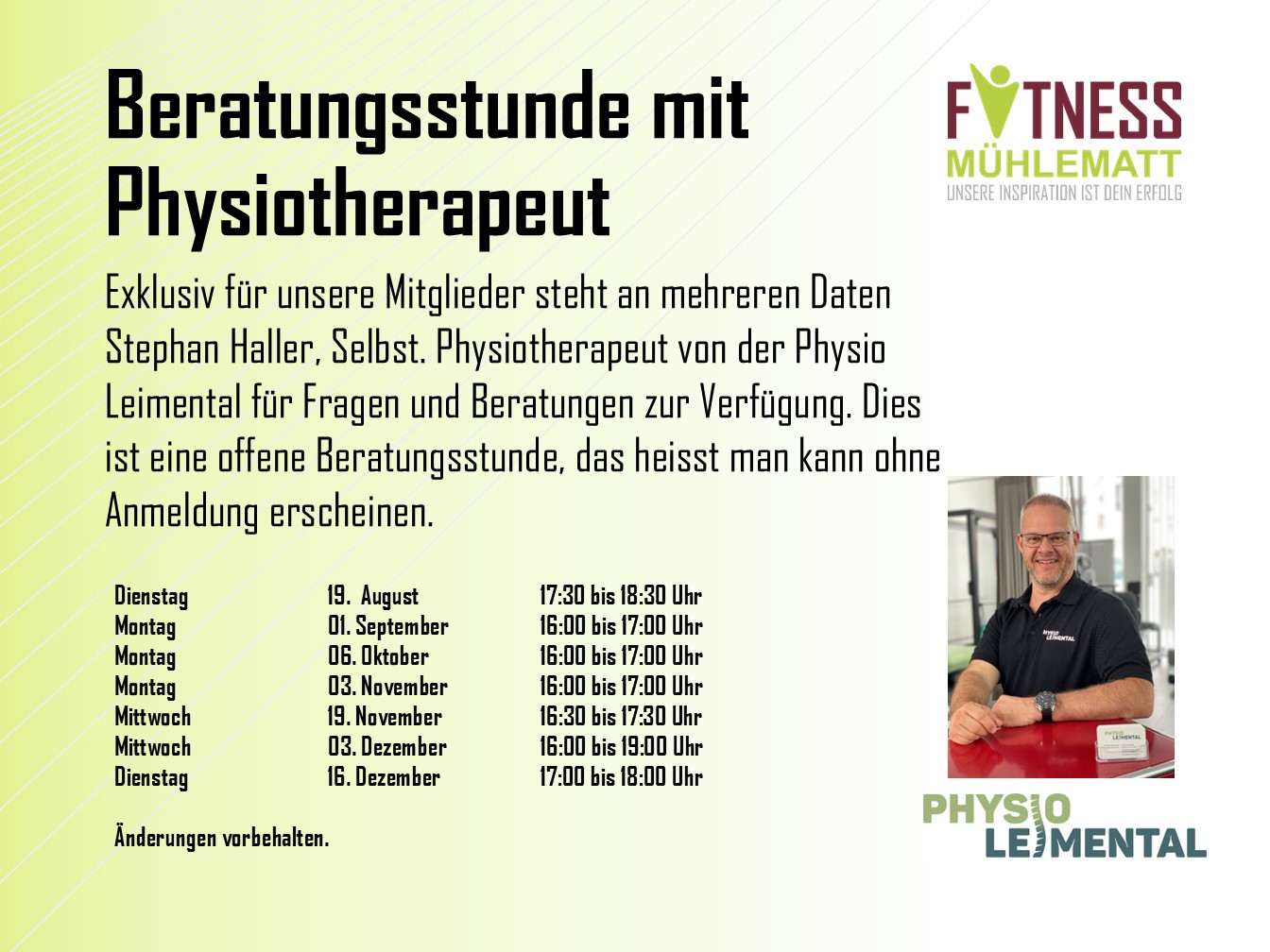 *Änderungen vorbehalten. Siehe Aushang unter News.